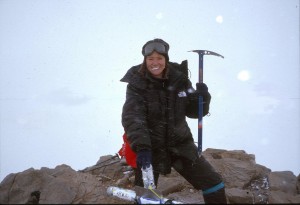 Lori at the top of Mount Aconcagua in Buenos Aires, Argentina in 2000.