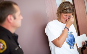 Mary takes a moment to cry to herself after seeing Dragotta in-person for the first time since the night of the crash. Photo by Lukas Keapproth
