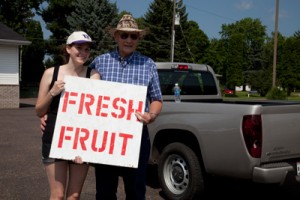 Katie Greenway and her grandfather holding a strawberry stand of their own. Photo courtesy Jordy Liebowitz